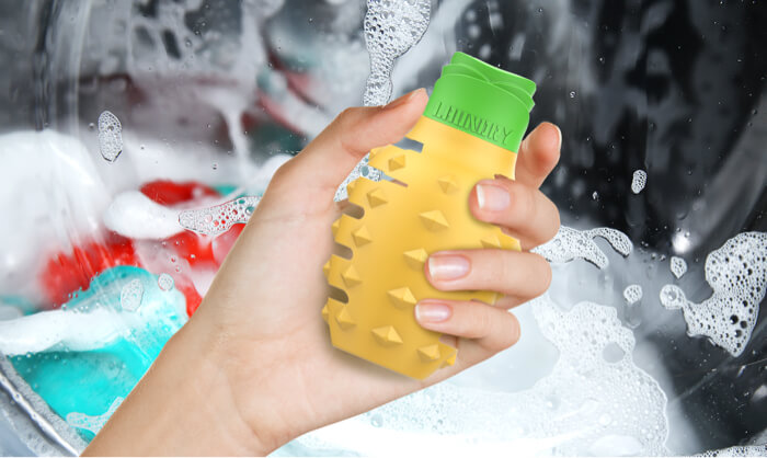 It takes the form of a sphere (reminds me of a pineapple), and you toss it into your laundry to replace detergent. The Laundry Masher features specially crafted nano silver-infused ceramic beads at its core. These ceramic beads react with water, providing a deep cleaning action for your clothes.
